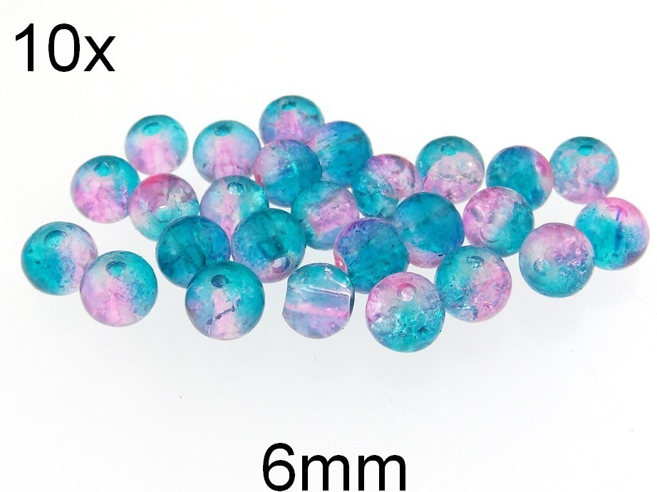 Margele Crackle (cristal de gheata) din sticla. Diametru: 6mm. Orificiu: ~1-1.5mm. Pretul se refera la 10 bucati