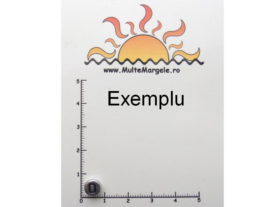 Margele argintii din acril cu litere. Diametru: 7mm. Grosime: 4mm. Orificiu: ~0.8mm. Pretul se refera la 5 bucati.