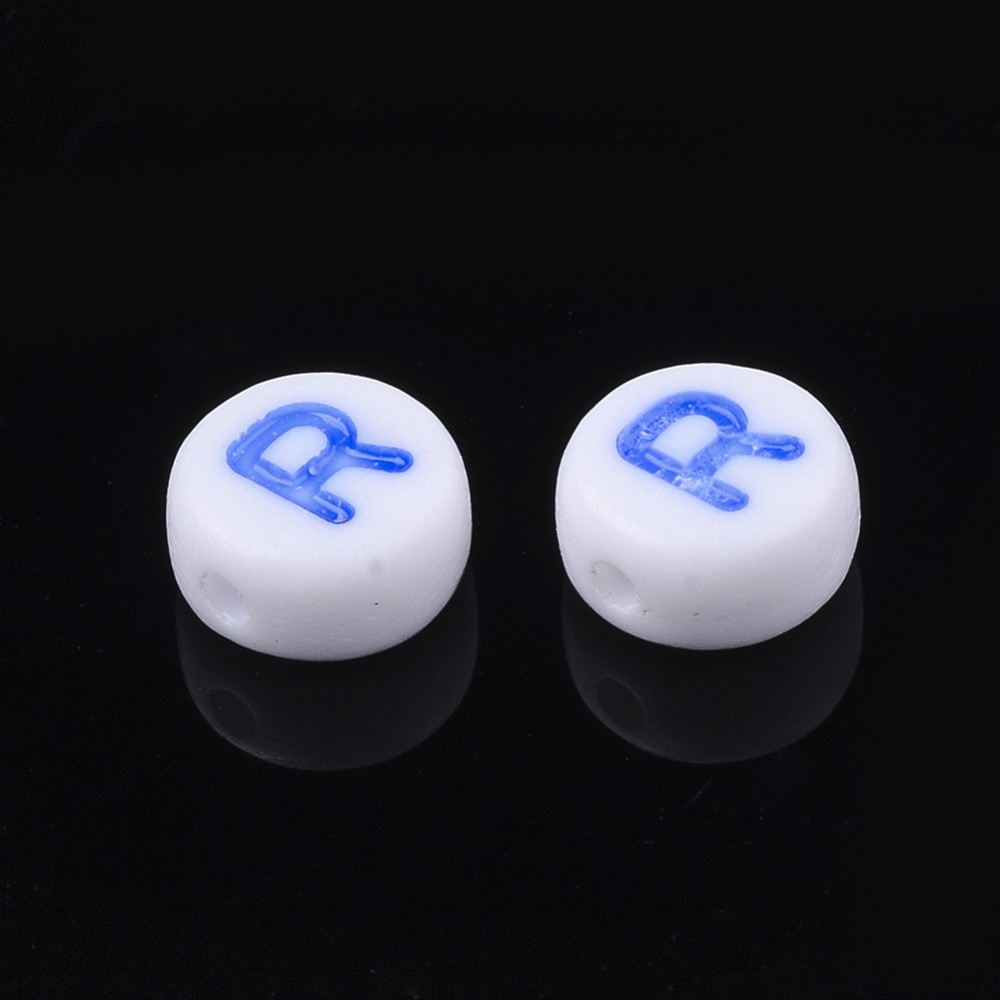 Margele multicolor din acril cu litere. Diametru: 7mm. Grosime: 4mm. Orificiu: ~1.2mm. Pretul se refera la 5 bucati.