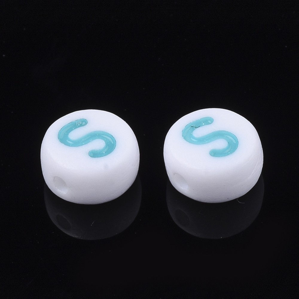 Margele multicolor din acril cu litere. Diametru: 7mm. Grosime: 4mm. Orificiu: ~1.2mm. Pretul se refera la 5 bucati.