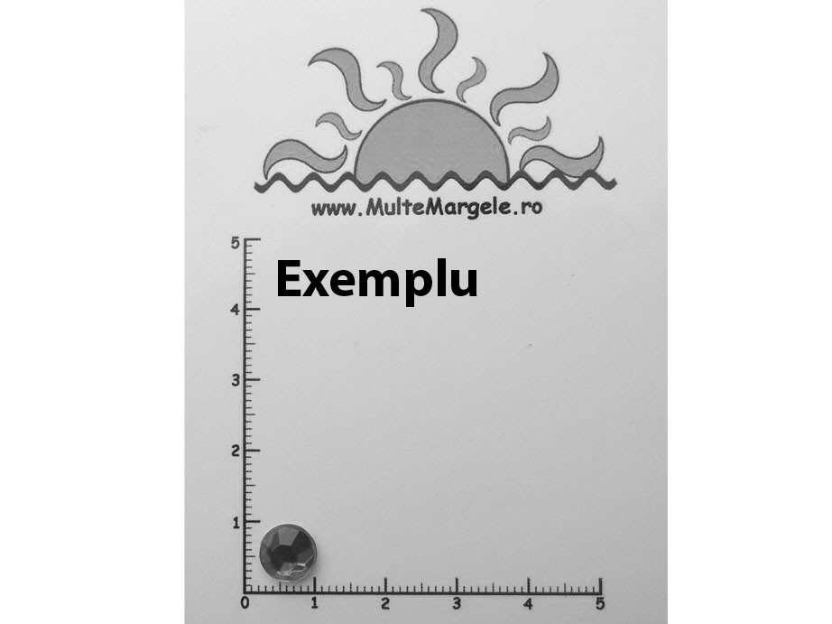 Strasuri din acril. Fatetate. Cabochon. Spatele este plat. Diametru: 8mm. Grosime: 3mm. Pretul se refera la 5 bucati.