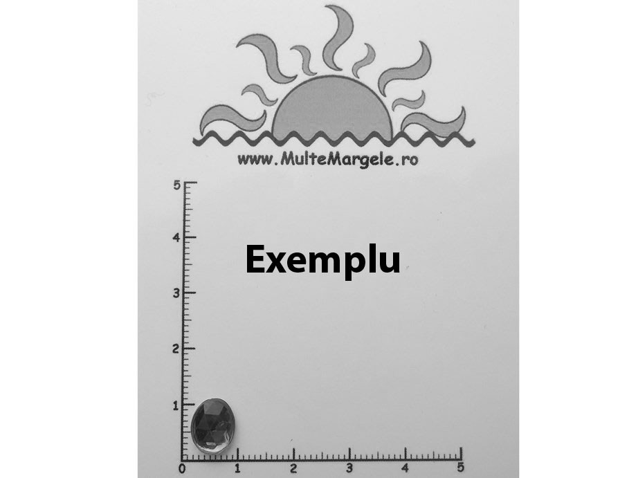 Strasuri din acril. Fatetate. Cabochon. Spatele este plat. Diametru: 10x8mm. Grosime: 3mm. Pretul se refera la 5 bucati.