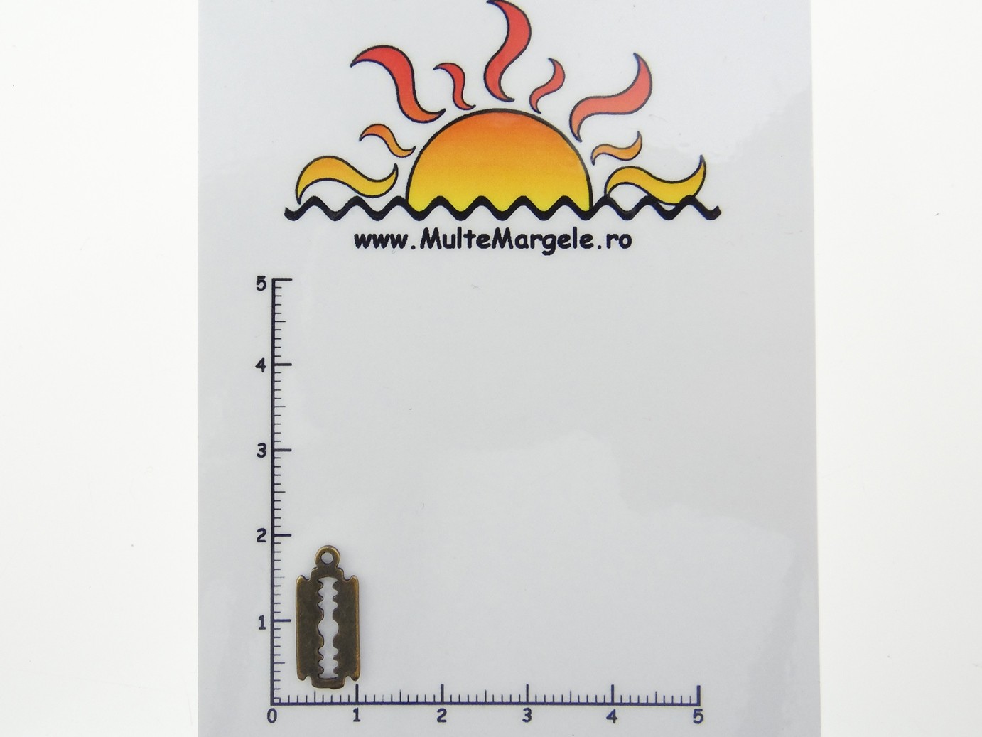 Charm din aliaje metalice. Culoare: Bronz. Dimensiuni: 16.5×7.5x1mm. Orificiu: 1mm. Pretul se refera la o bucata.