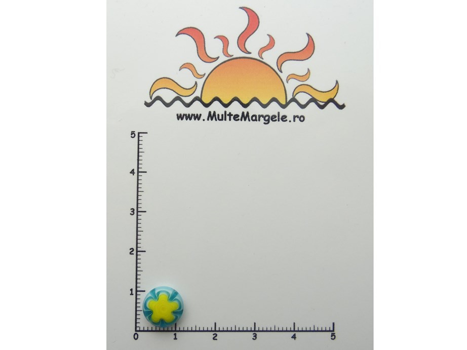 Margea din sticla Millefiori. Diametru: 10mm. Grosime: ~3.5mm. Orificiu: ~1mm. Pretul se refera la o bucata.