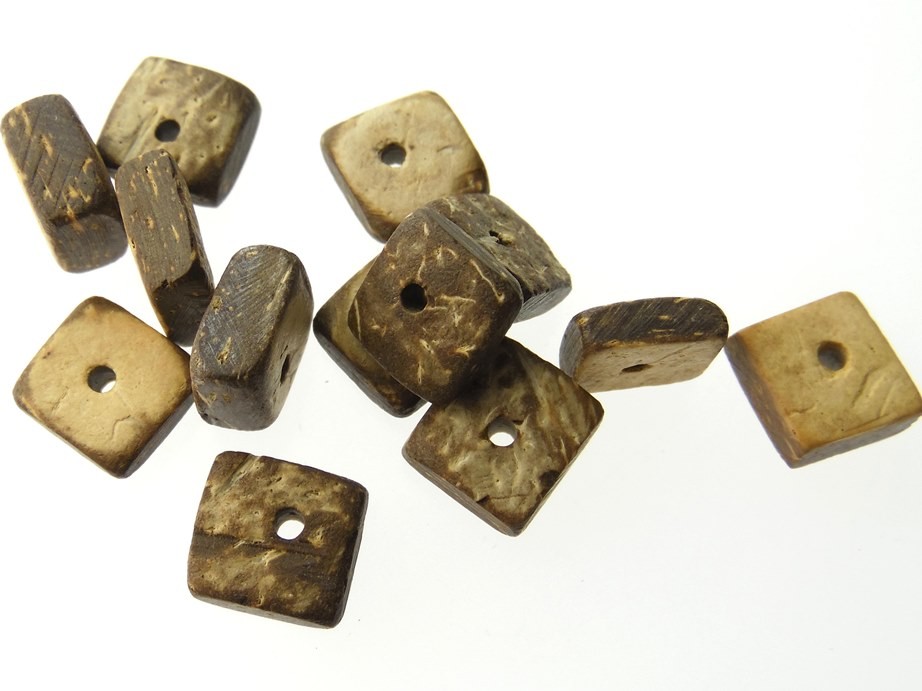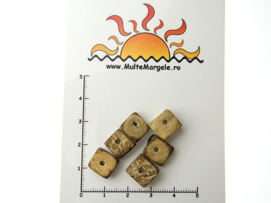 Margele din cocos. Dimensiuni: 10x10x2~5mm. Orificiu: ~2mm. Pretul se refera la 5 bucati.
