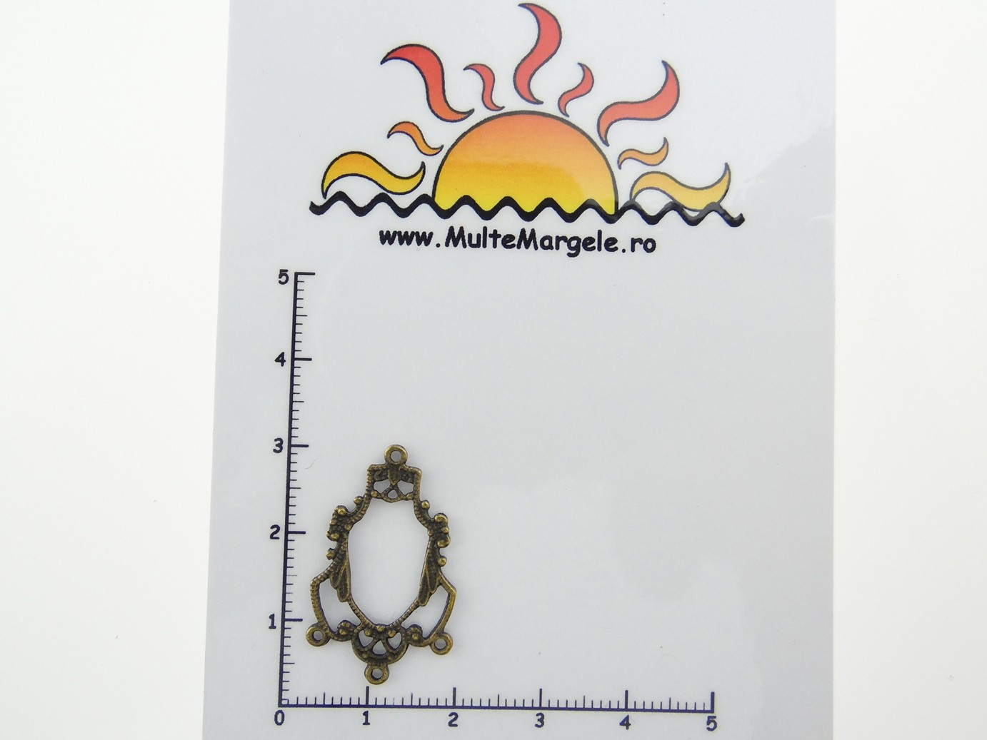 Candelabru din aliaje metalice. Culoare: Bronz. Dimensiuni: 27×16.5×1.5mm. Orificiu: 1mm. Pretul se refera la o bucata.