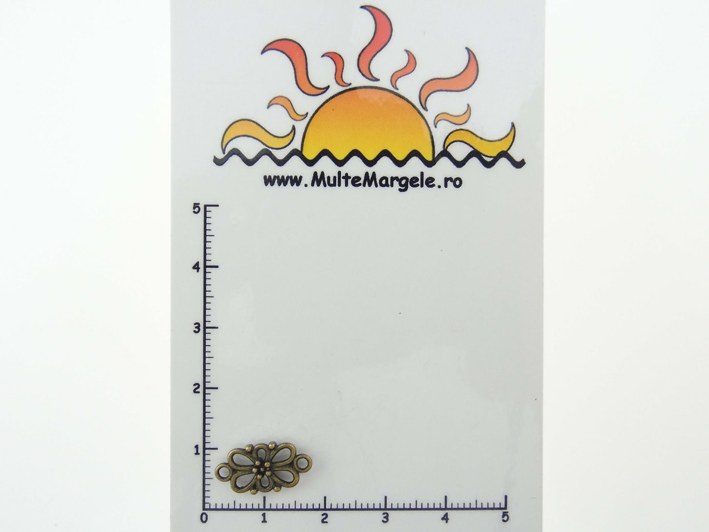 Conector metalic. Culoare: Bronz. Dimensiuni: 16x8mm. Grosime: 3mm. Orificiu: 1.5mm. Pretul se refera la o bucata.