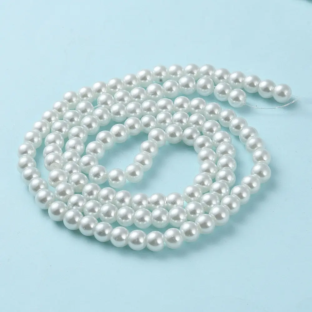 Perle din sticlă albe, sidefate, rotunde