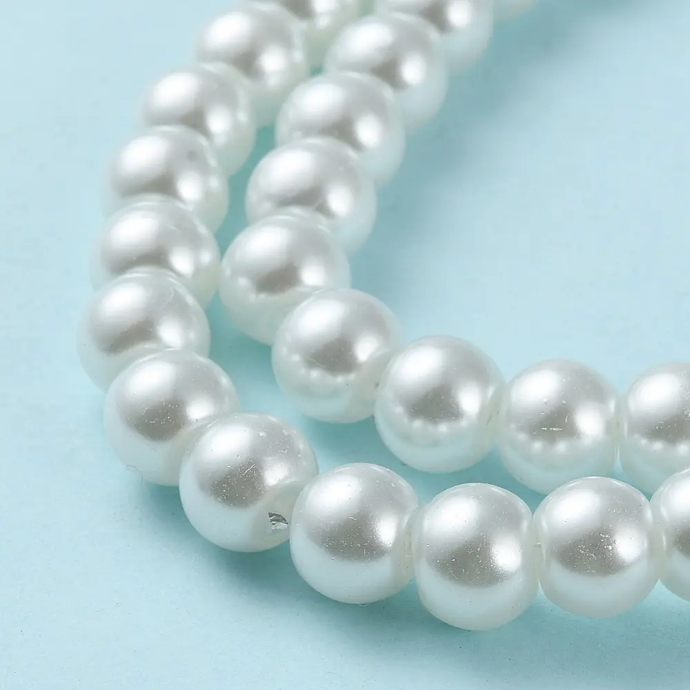 Fiecare perlă este realizată din sticlă de înaltă calitate, cu finisaj sidefat uniform și o suprafață netedă. Diametrul este de 8 mm, iar orificiul central de 1 mm permite trecerea ușoară a sârmei, aței de nylon sau a firului elastic. Un șirag conține aproximativ 100 de bucăți, suficiente pentru realizarea unui set complet de accesorii handmade. Prețul afișat se referă la un singur șirag de perle.