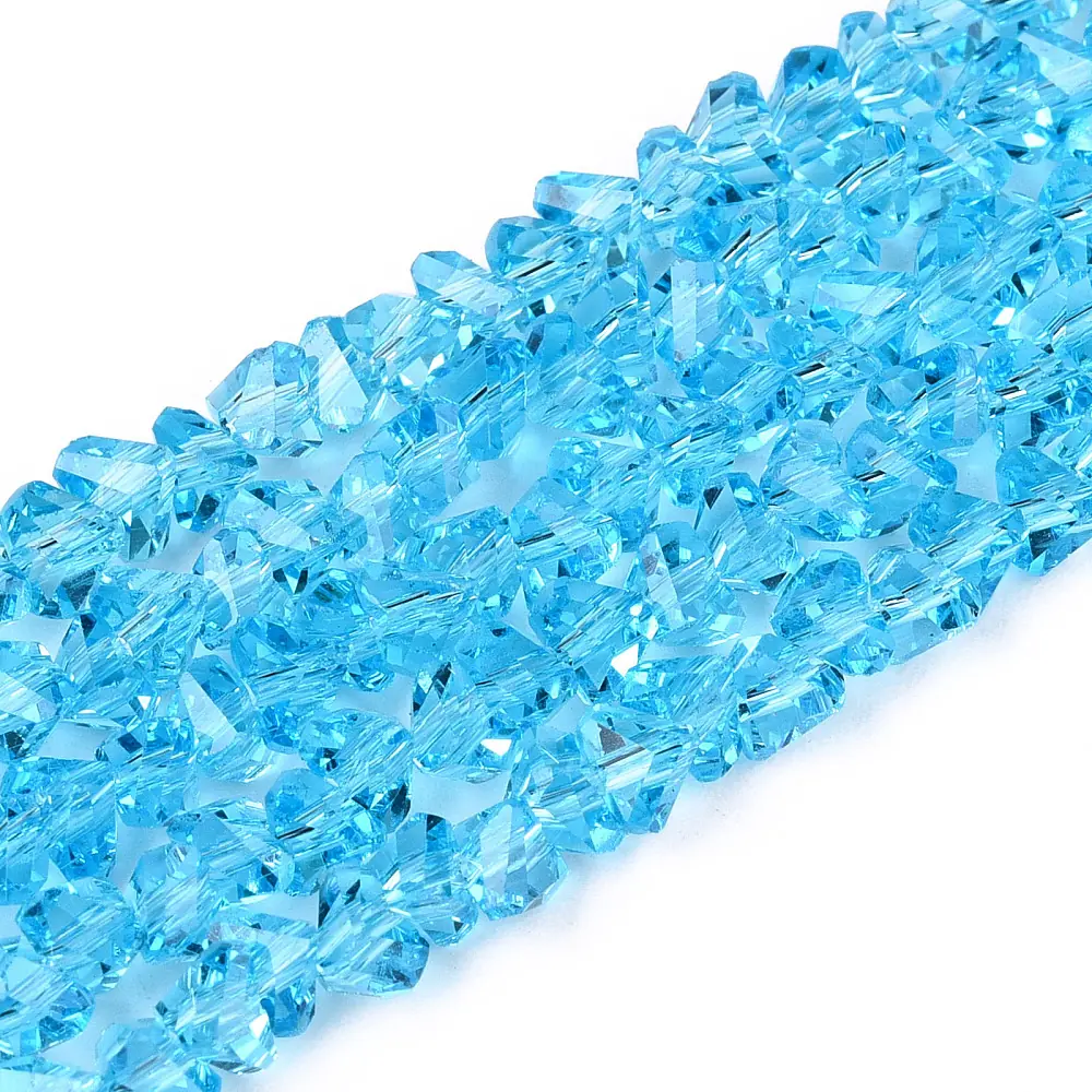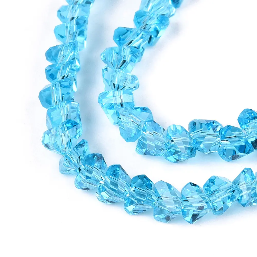 Fiecare mărgea este realizată din sticlă transparentă de calitate, prelucrată cu fațete fine care captează lumina din toate unghiurile. Formele triunghiulare creează reflexii puternice și un aspect tridimensional, perfect pentru bijuterii cu efect premium. Margelutele sunt uniforme ca dimensiune și culoare, ceea ce oferă un rezultat final elegant și bine proporționat.