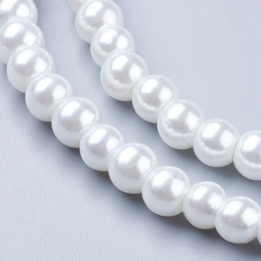 🤍 Perle din sticlă lucioase albe 6 mm – rafinament și strălucire pentru bijuterii handmade